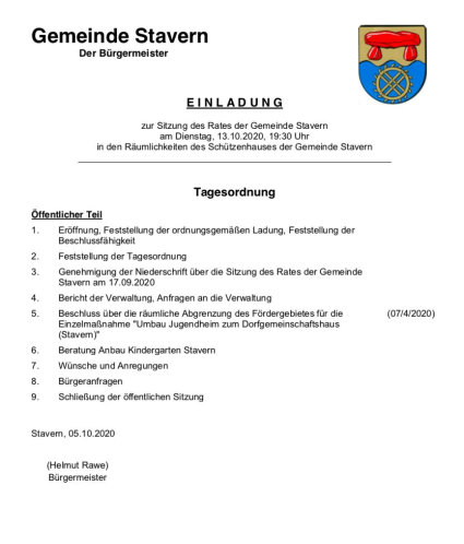 Die nächste Ratssitzung findet am Montag, d. 06.09.2021, 19.30 Uhr,